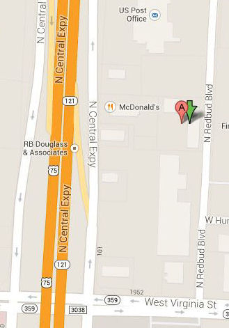 We are between N. Central Expy and Redbud Blvd, Google Map 33.200701,-96.637381 |